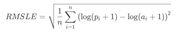 RMSLE는 Root Mean Squared Logarithmic Error의 약자로, 예측 값과 실제 값의 차이를 로그 변환하여 계산한 후, 그 차이의 제곱 평균의 제곱근을 구한 값이다. 이 지표는 예측 오차를 측정하는 데 사용되며, 특히 큰 값보다 작은 값의 오차를 더 중요시하는 경우에 유용하다. 이는 예측 값이 실제 값보다 훨씬 클 때 더 큰 패널티를 부과하므로, 예측 값이 과대평가되는 것을 방지하는 데 효과적이다.