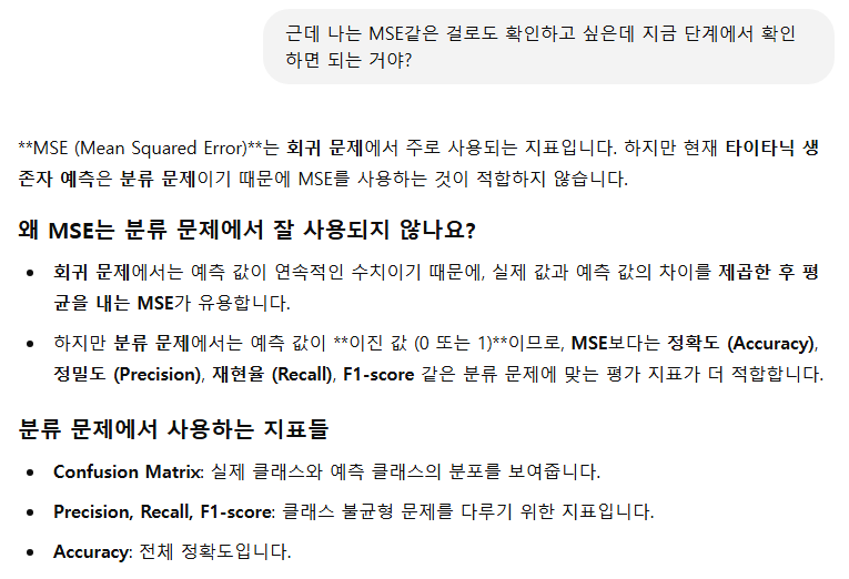 아!! 오차행렬은 분류에서 사용, MSE는 회귀에서 사용하는 것이다. 또 다른 깨달음이다. 오늘 엄청 많은 것을 깨닫네!
