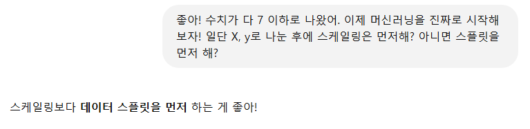 머신러닝을 위해 원핫인코딩한 df를 X와 y로 나눴다. 이번엔 제발 성공해야할 텐데..! 다음은 스케일링 후 데이터 스플릿이었던가??
