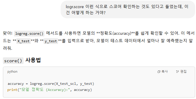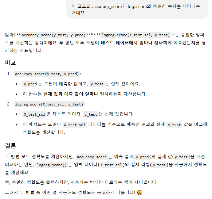 엇 그럼 accuracy_score logr.score 이 두 코드가 똑같은 역할이라는 뜻인가?