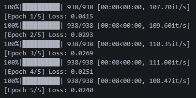 print(f'[Epoch {epoch+1}/{epochs}] Loss: {total_loss / len(train_dataloader):.4f}')
