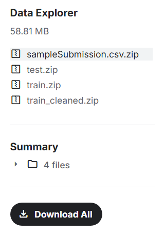 4개의 파일로 되어있다. 서브미션은 뭔지 잘 몰라서 찾아봤는데, 캐글에 제출할 때 따라야하는 양식인 것 같다.