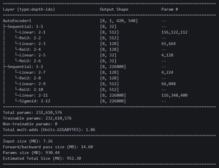 파라미터는 2억 7천만 개에서 2억 3천만 개로 줄었다. 아마 사이즈가 512x512에서 420x540으로 바뀌어서 그런듯하다.