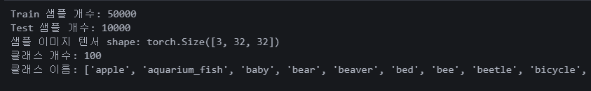 print_dataset_info("CIFAR100", cifar_train, cifar_test)