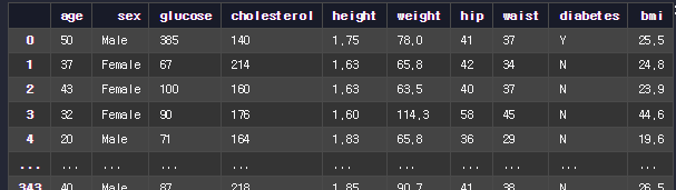 비만도를 분류해서 obesity라는 컬럼에 저정