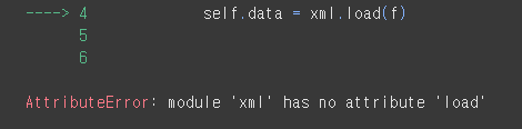 에러가 떴다. xml은 load 함수가 없단다. json형식만 load 함수를 쓸 수 있는 것 같다. 차별 너무하네.