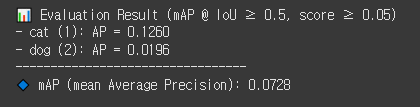 물론 엄청 만족스러운 수치는 아니지만, 그래도 첫 번째 객체탐지 모델을 완성했다는 것에 의미를 두자.