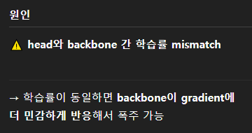 backbone의 learning rate이 head과 같아서 터져버린 건가??