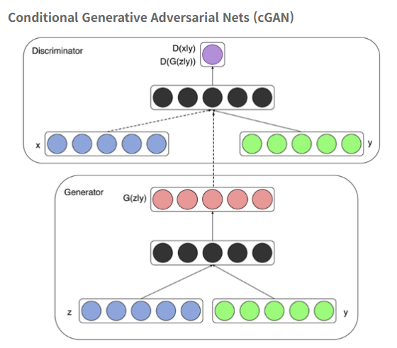 이미지로 보았을 때, GAN 구조에서 초록색 y값이 추가된 것을 제외하고 전부다 일치한다.