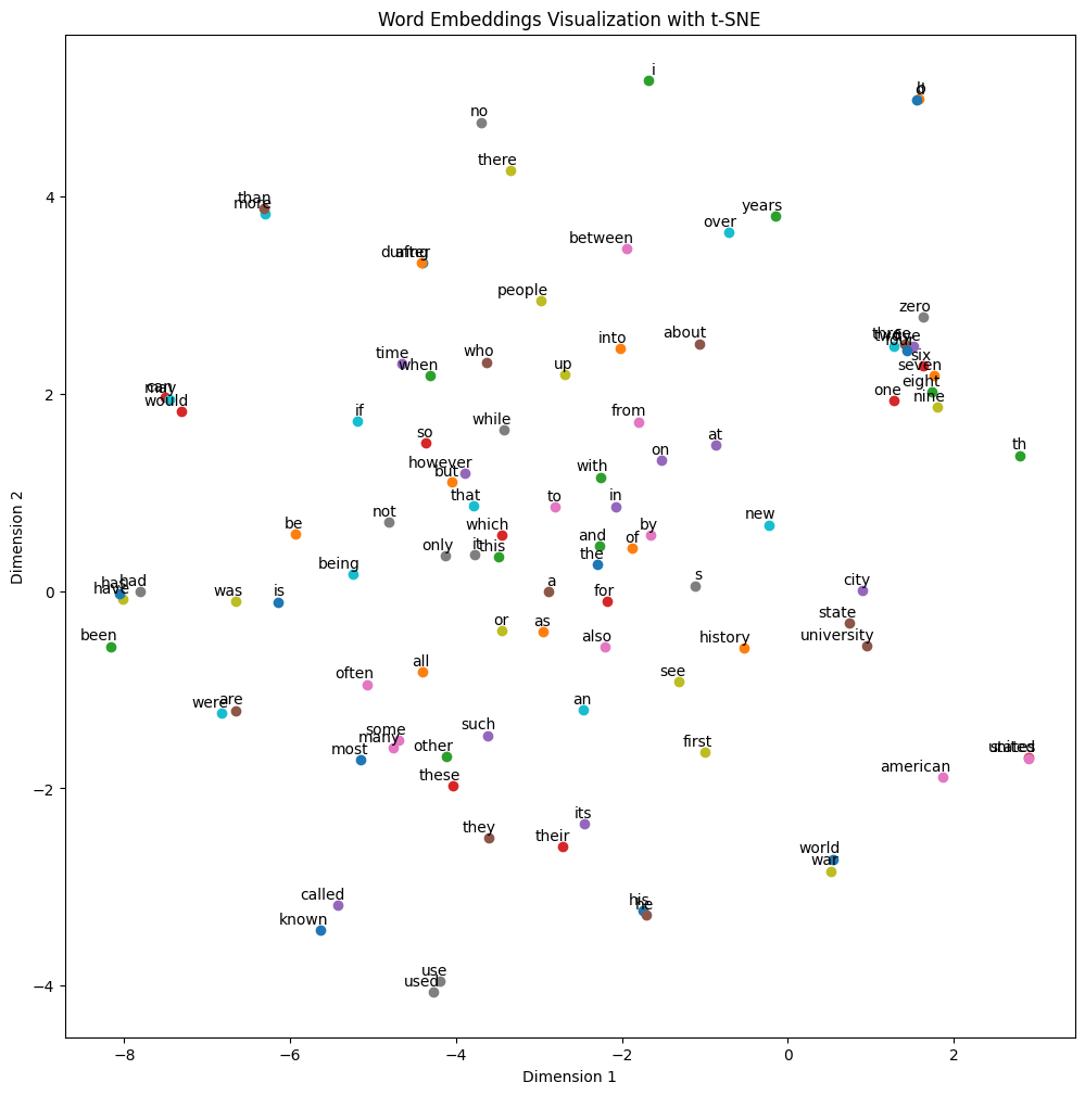 plt.title('Word Embeddings Visualization with t-SNE') # 그래프 제목
