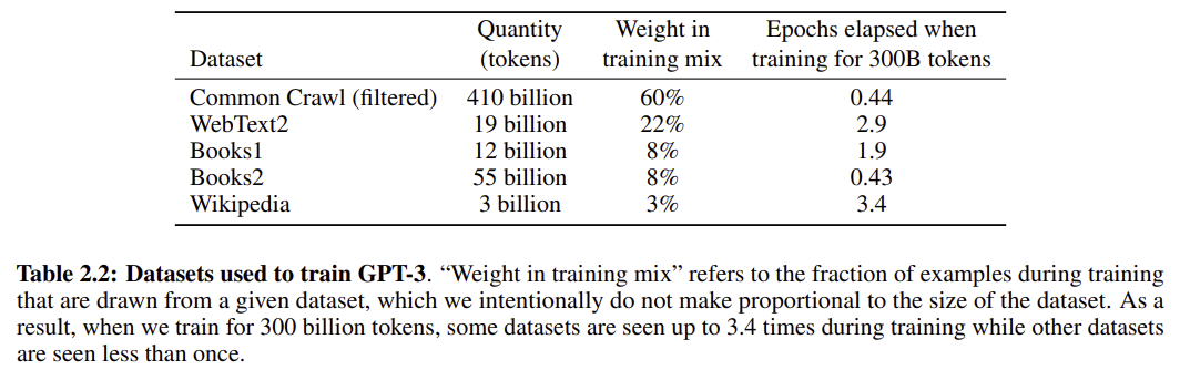 문제: GPT-3의 훈련 데이터셋에서 가장 큰 비중을 차지한 것은 무엇인가요?