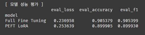 | 항목 | Full Fine Tuning | PEFT LoRA |