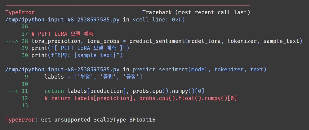 헉? 에러가 떴다. BFloat16 형태는 지원하지 않는다고 한다.