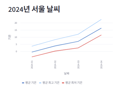 st.line_chart(data, x="날짜", y=["평균 기온", "평균 최저 기온", "평균 최고 기온"], x_label="날짜", y_label="기온")