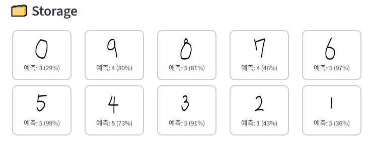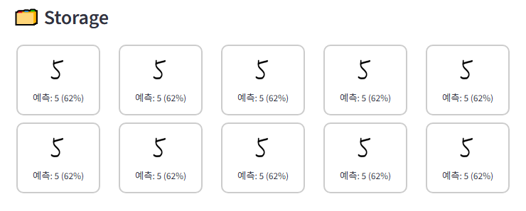 인풋 이미지, 예측한 숫자, 확률 3개를 하나의 테두리 박스 안에 담을 수 있도록 간단한 HTML CSS 코드를 추가했다.