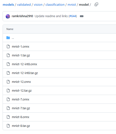 제공된 링크로 들어가니 이미 만들어진 onnx 파일들이 있다. 숫자가 1, 7, 8, 12 이렇게 있는데 찾아보니 모델 버전이라고 한다. YOLO 뒤에 붙는 숫자 느낌인듯.
