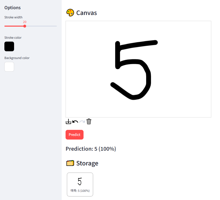 이렇게 하면 모델에 들어가는 인풋은 캔버스 색상에 관계없이 무조건 검은색 배경 & 흰색 숫자가 된다.