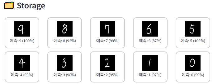 그럼 만약 캔버스 인풋을 MNIST 학습 데이터와 동일하게 검은색 배경에 흰색 숫자로 하면 어떨까?? 제대로 예측할까??