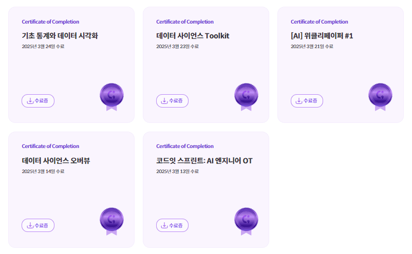 종합해 보자면 Agentic AI 같은 신기술은 접하지 못했지만, AI 엔지니어로써 필요한 기본적인 이론과 방법론은 전부 습득할 수 있었다.