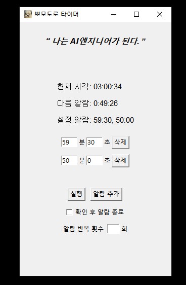뽀모도로를 자동화할 수 있는 타이머도 만들었다. 이건 두고두고 쓸듯,,,