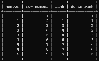 FROM number_table WINDOW w AS (ORDER BY number);