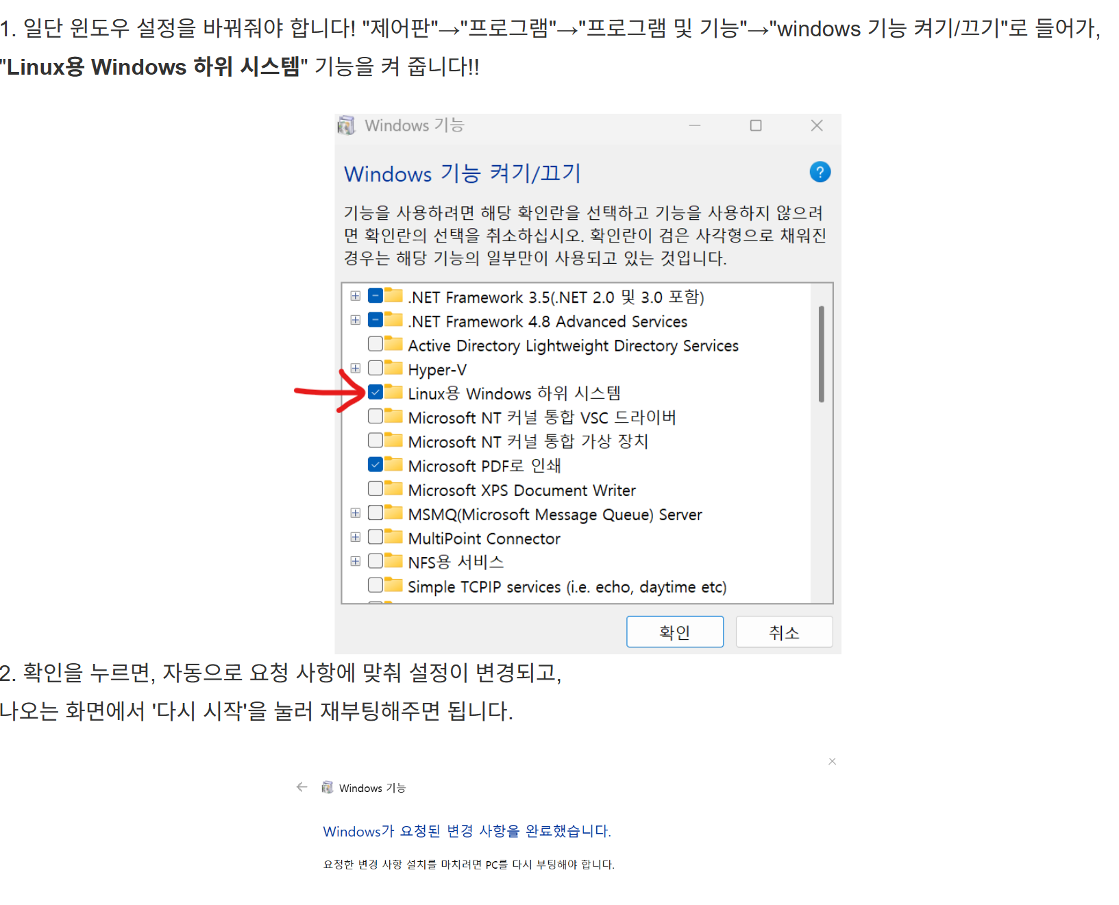 powershell에서 wsl 실행 후 아래의 코드 순서대로 실행