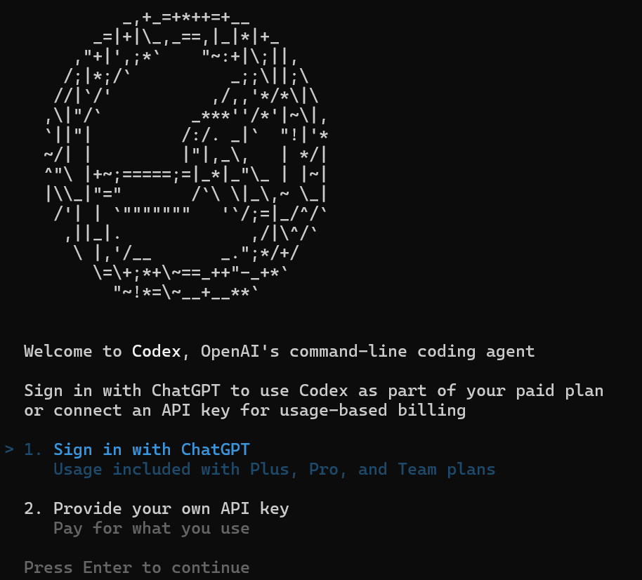 위의 이미지처럼 나오게 되면 codex를 사용하실 수 있습니다.
