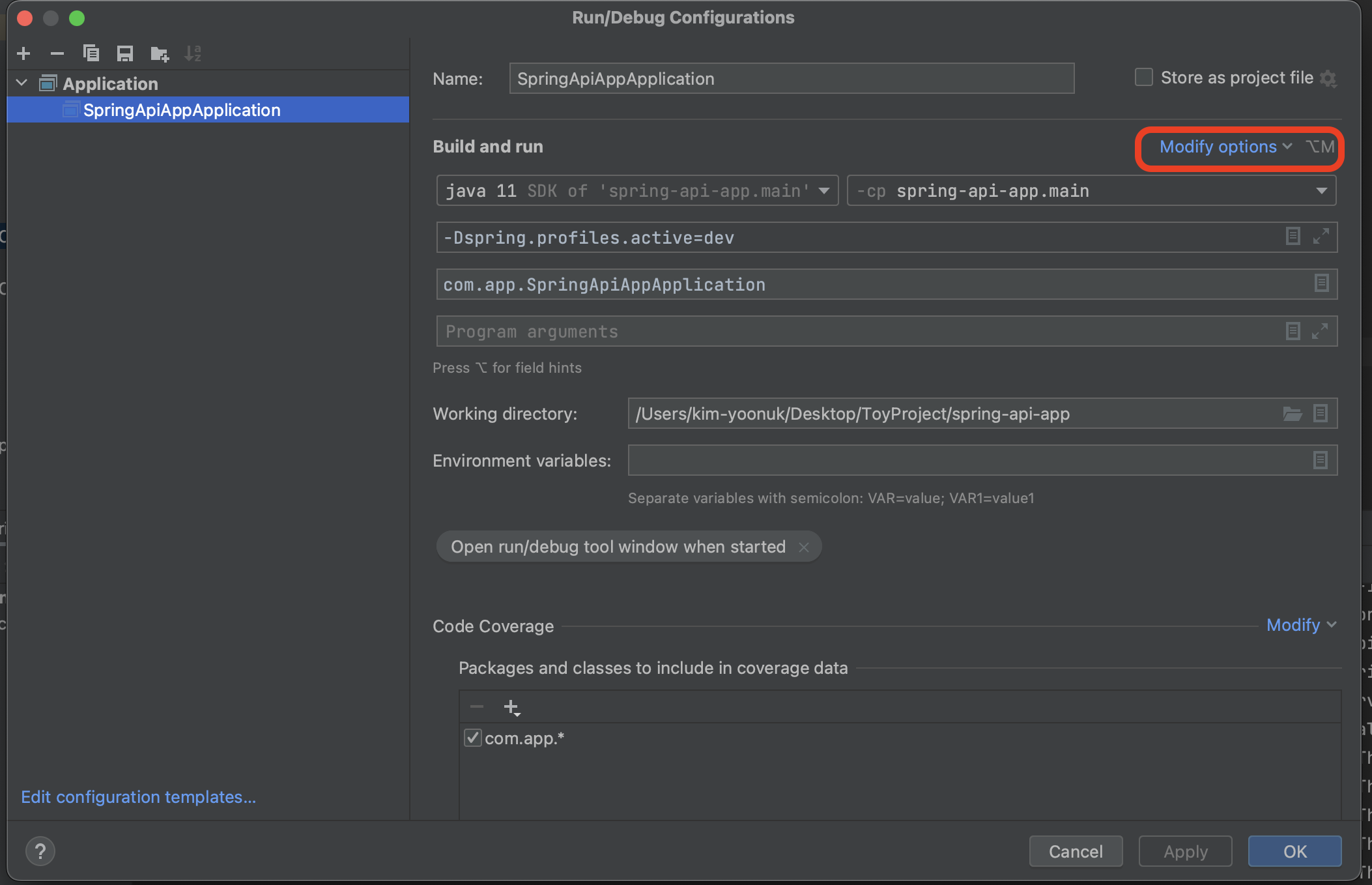 Modify options를 누릅니다.
