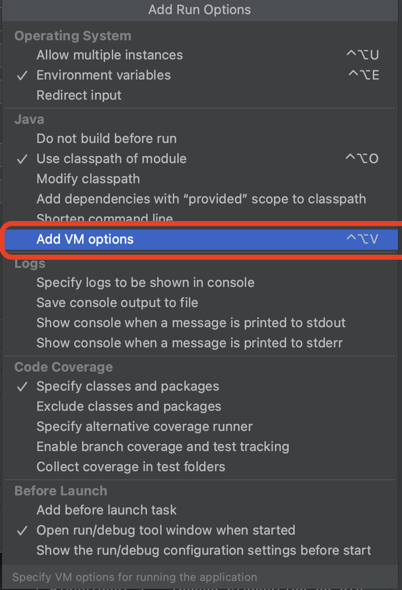 Add VM options를 누릅니다.