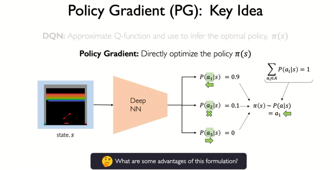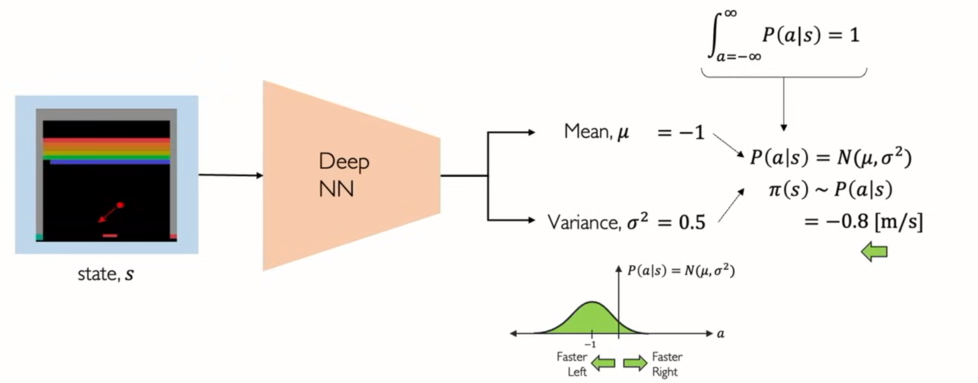 the sampling these actions is now going to be stochastic, not picking what the network think is best action.