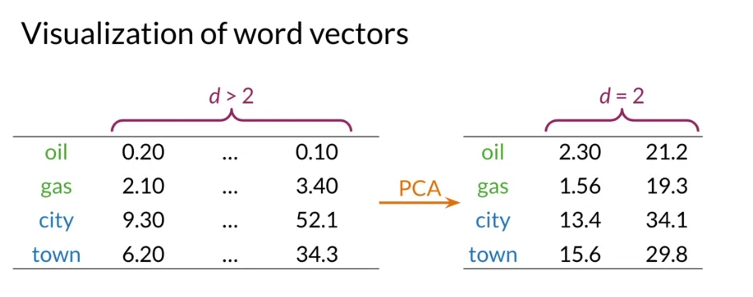 - use principal component analysis to visualize vector