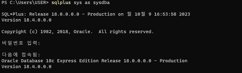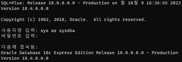 connect 연결할 사용자명/비밀번호;