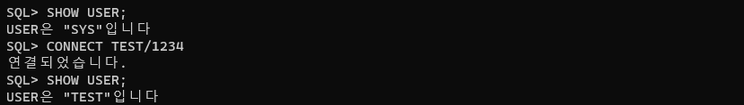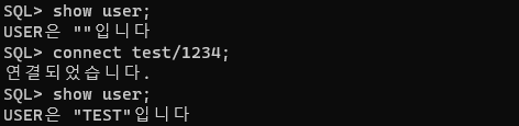 show user; // 현재 연동 계정 확인