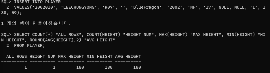 이제는 insert 구문이 잘 실행되는 것을 확인할 수 있다.