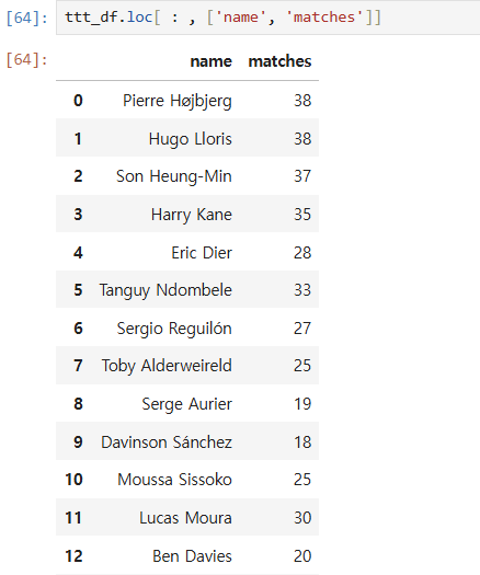 이름을 잘 지어놨다면 이것이 훨씬 편하다. 각 행열이 몇번째인지 세볼필요가 없으니까. 이름을 가지고 슬라이싱도 가능하다.