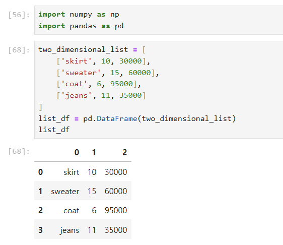 - 데이터프레임(DataFrame): 2차원 데이터 구조로, 엑셀의 스프레드시트(sheet)와 유사합니다. 여러 개의 시리즈가 모여서 형성된 구조로, 각각의 시리즈가 데이터프레임의 열(column)을 이룹니다. 행(row)과 열(column)로 이루어져 있으며, 각 행과 열은 인덱스로 구분됩니다. 즉, PANDAS가 표 모양으로 데이터를 다를 수 있는건 데이터프레임 기반이기 때문이다!