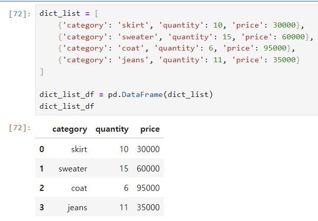 - 시리즈(Series): 1차원 데이터 구조로, 엑셀의 한 열(column)이나 파이썬의 리스트(list)와 비슷합니다. 인덱스(index)와 값(value)으로 이루어져 있습니다.