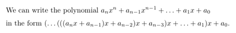 Horner의 방법은 다항식(polynomial)의 결과를 더 적은 연산 수로 도출해내려 할 때 쓰인다.