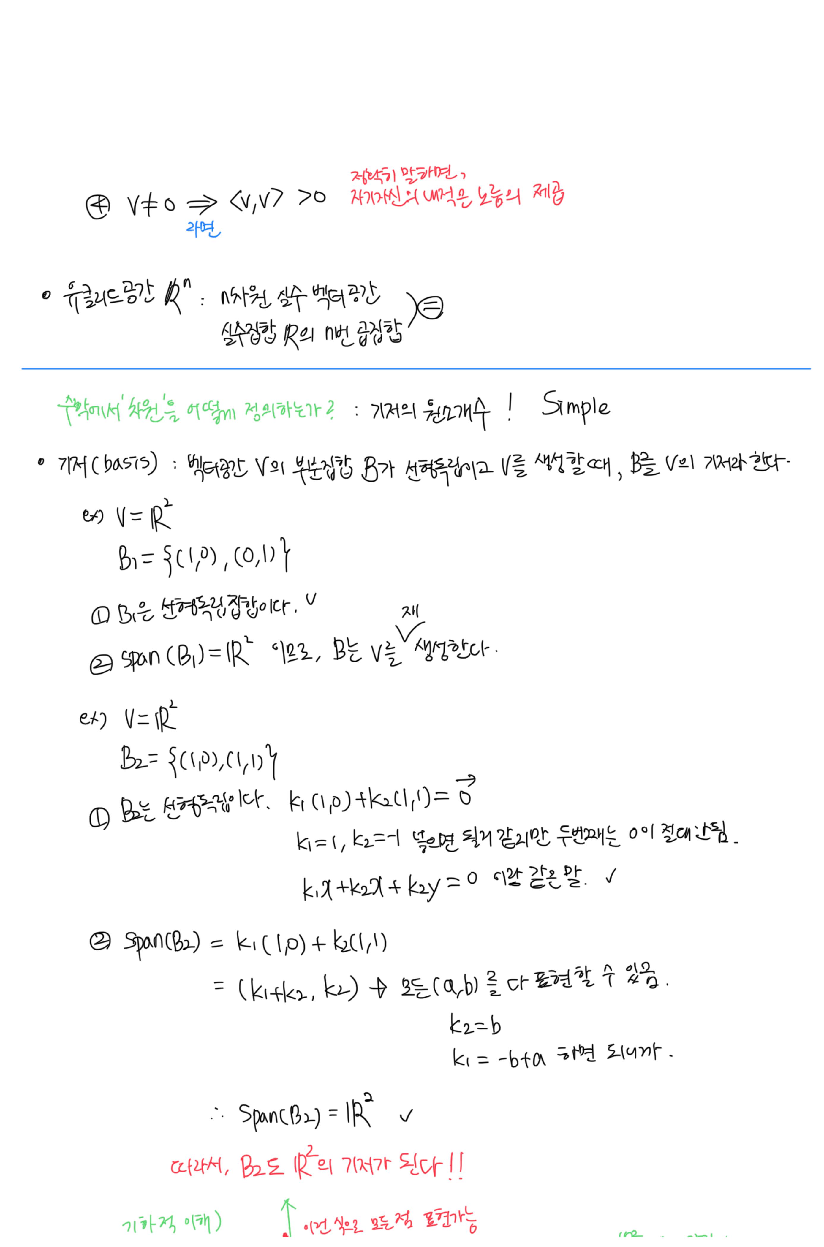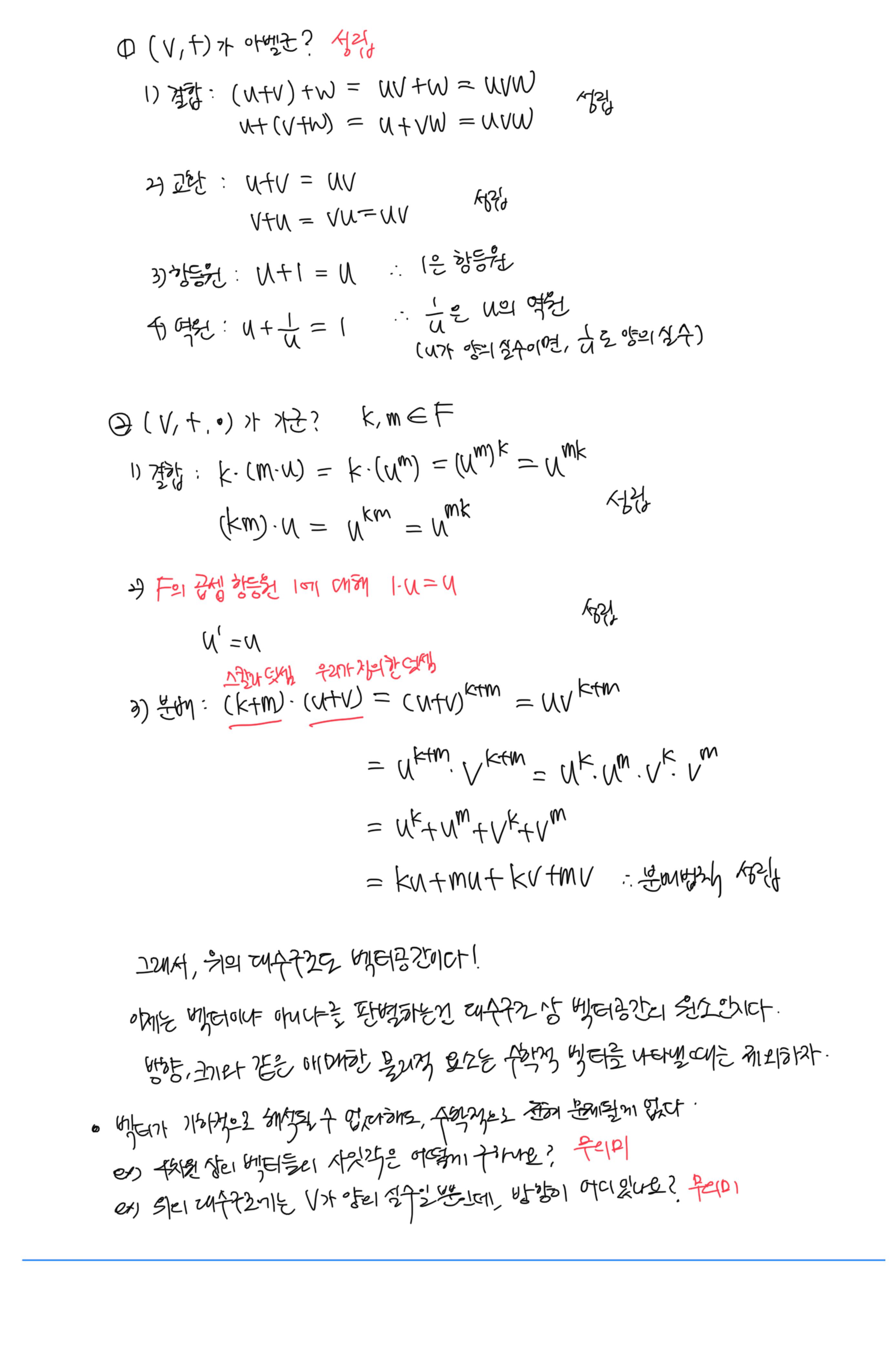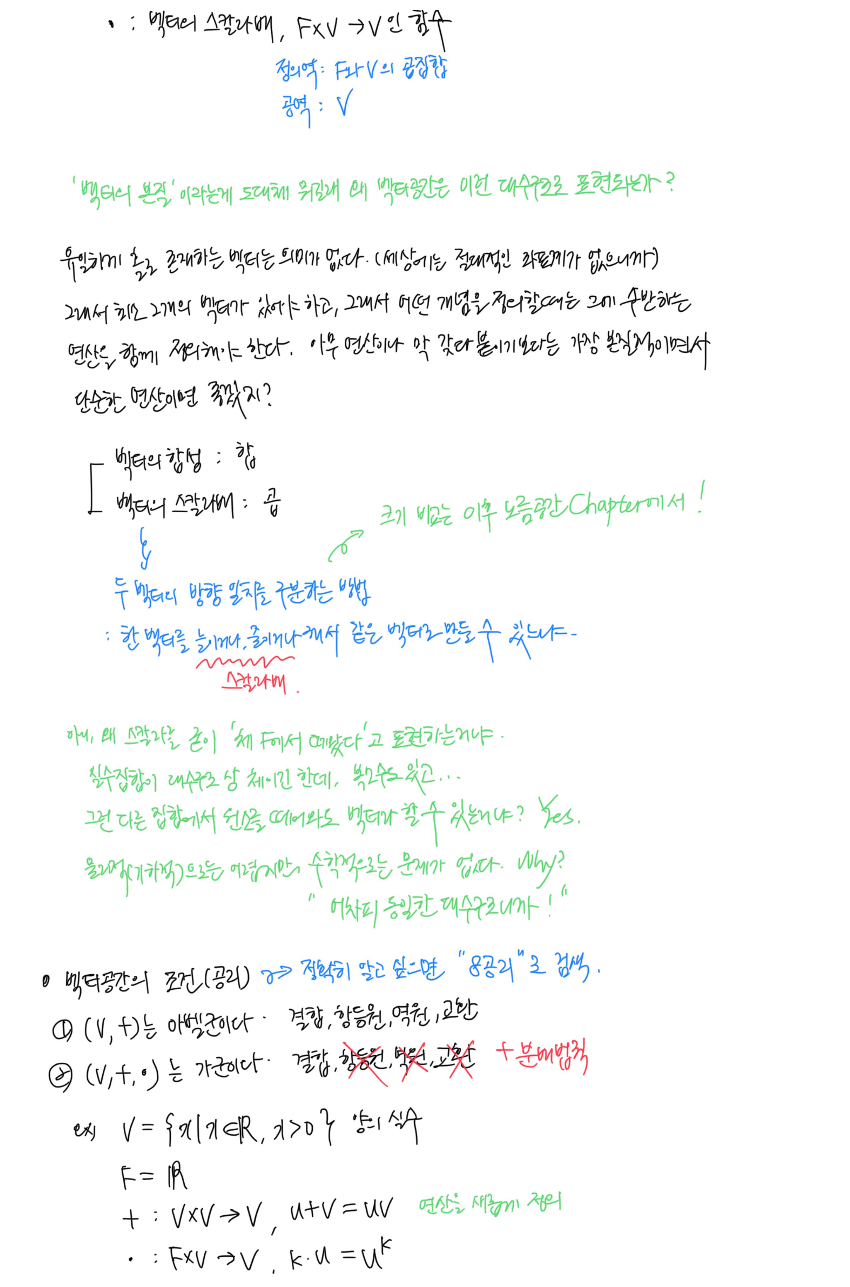 [이상엽 선형대수학] 3강. 수학적 벡터 (벡터공간) 필기