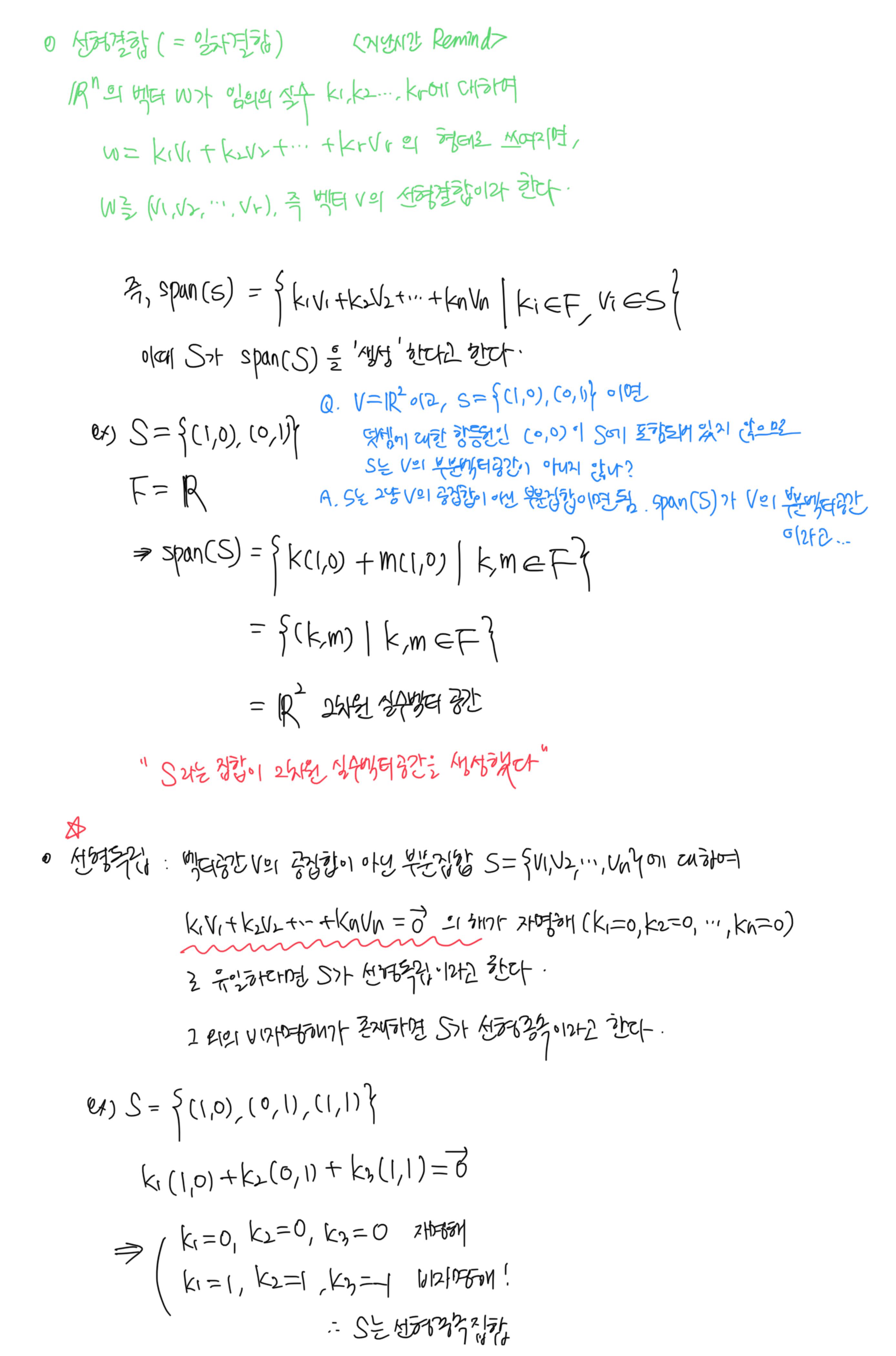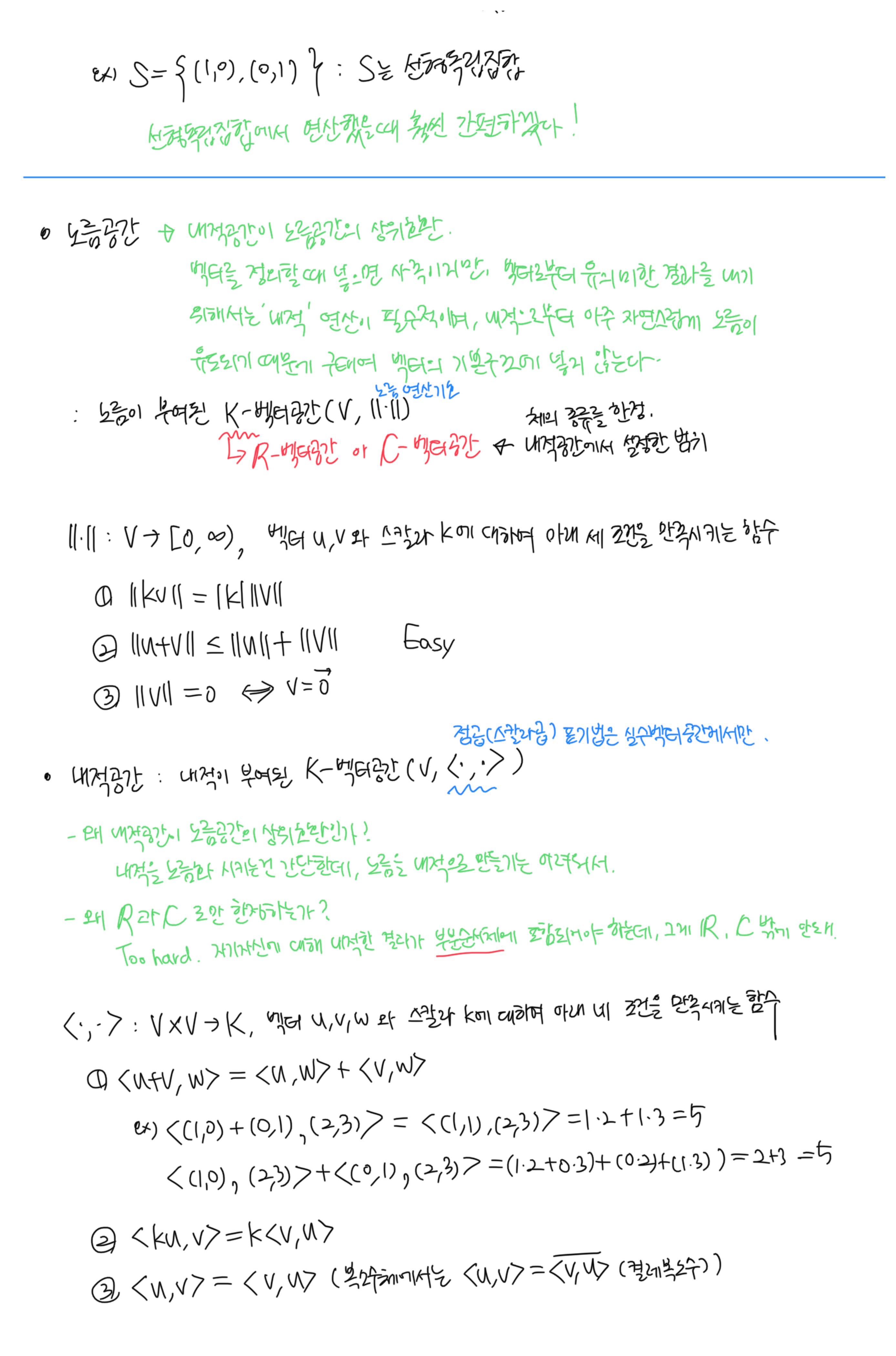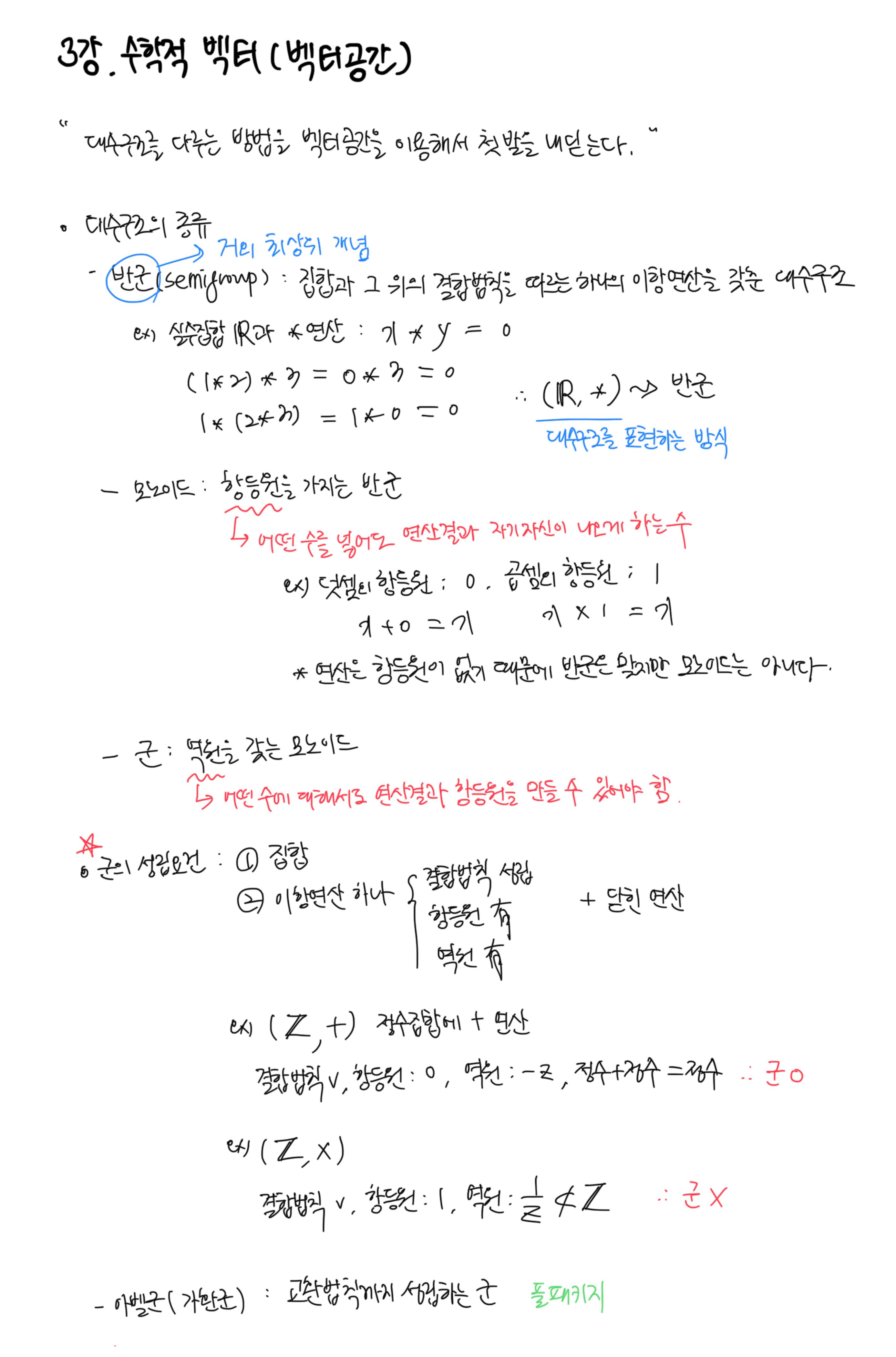 [이상엽 선형대수학] 3강. 수학적 벡터 (벡터공간) 필기