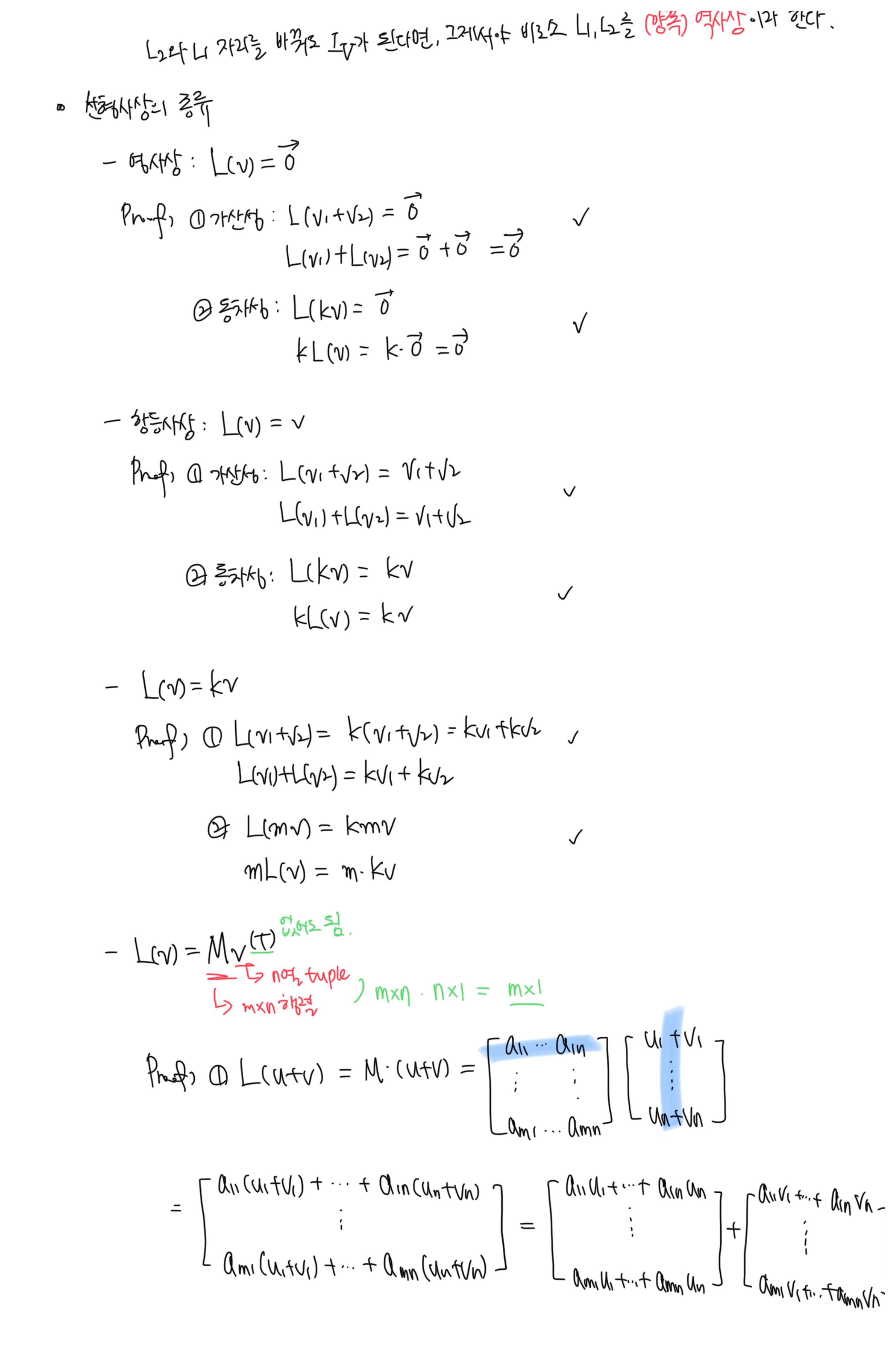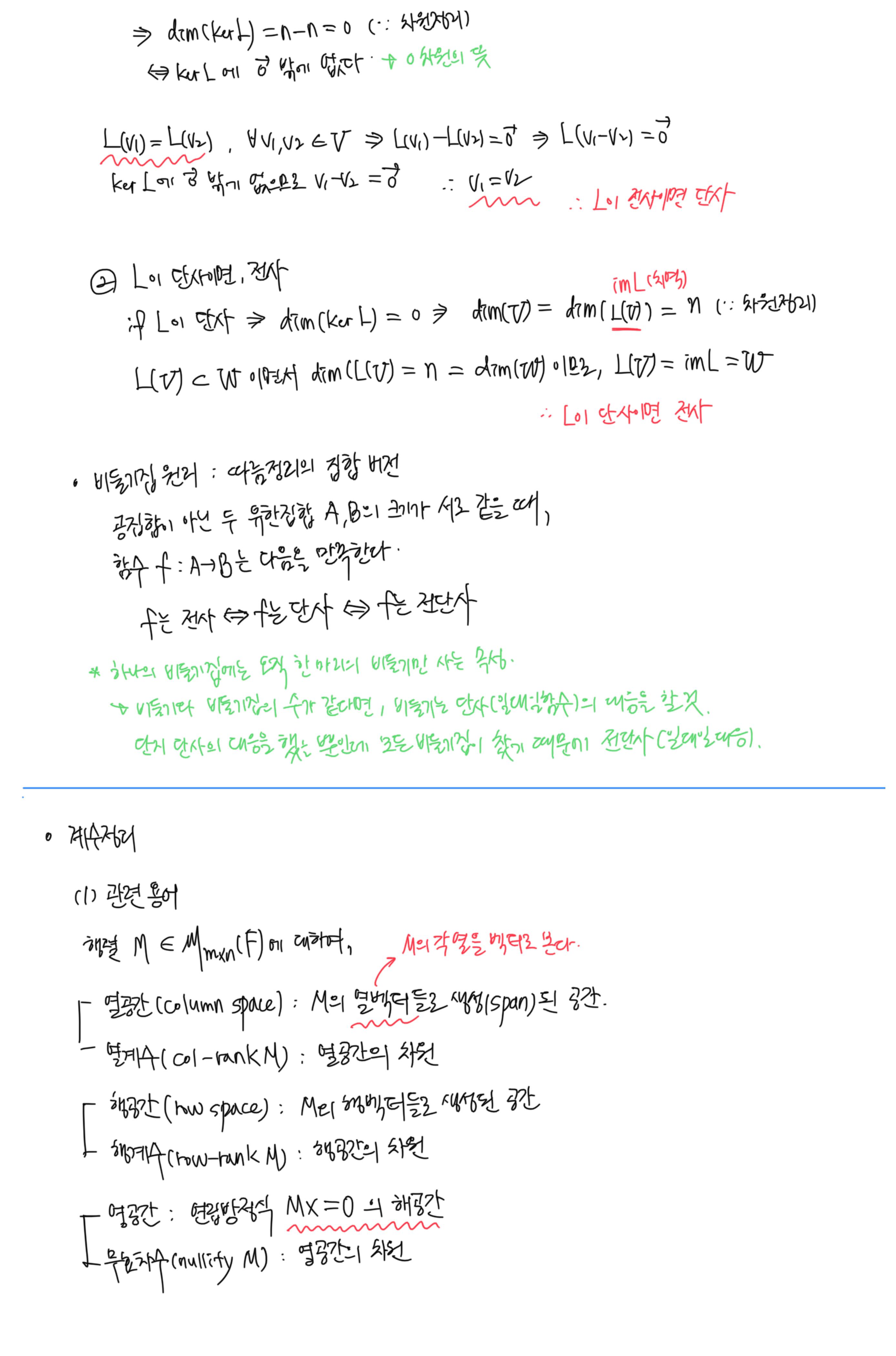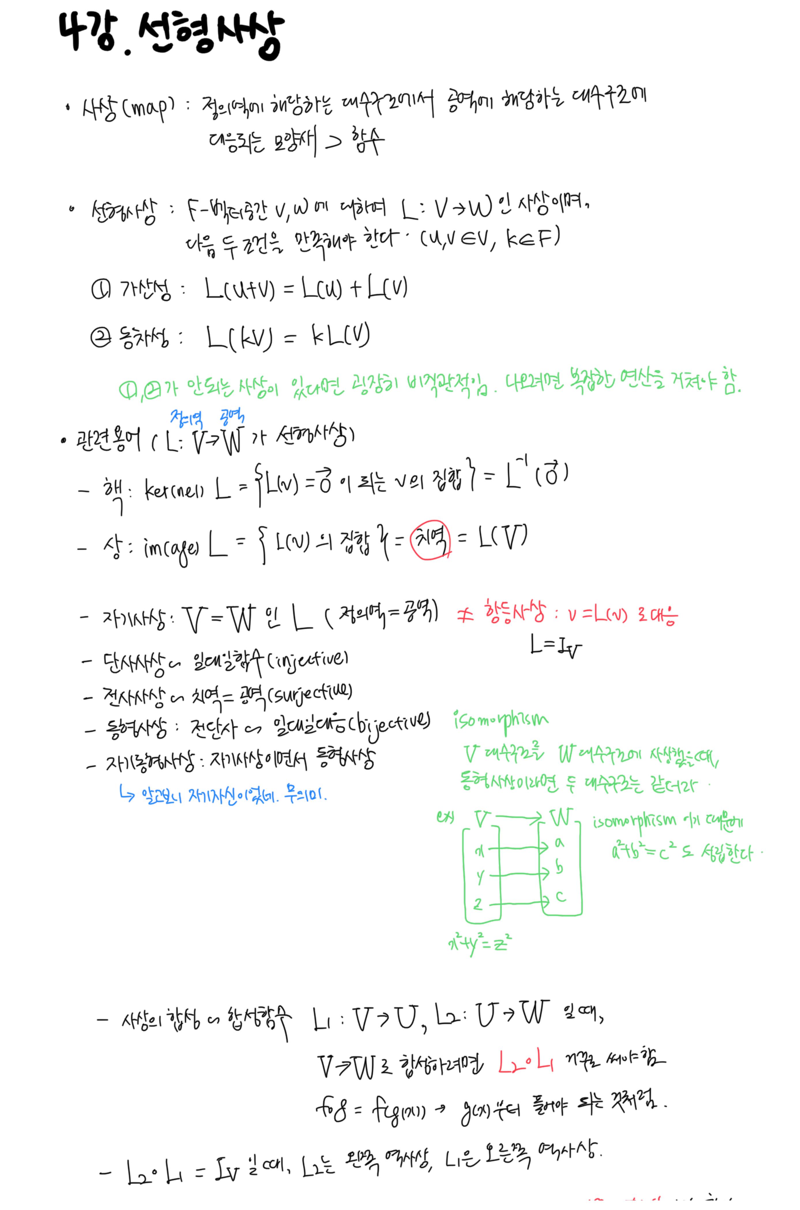 [이상엽 선형대수학] 4강. 선형사상 필기