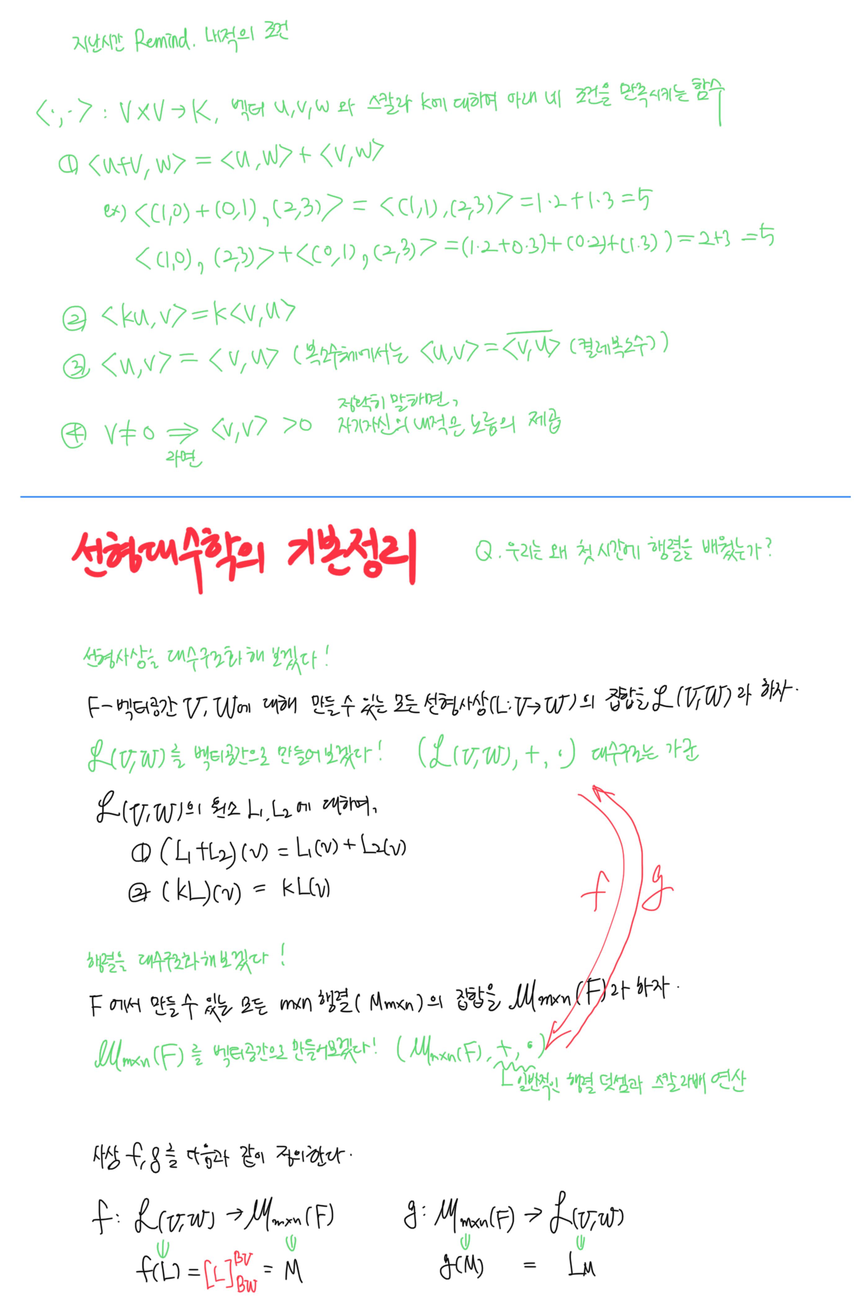 [이상엽 선형대수학] 3강. 수학적 벡터 (벡터공간) 필기