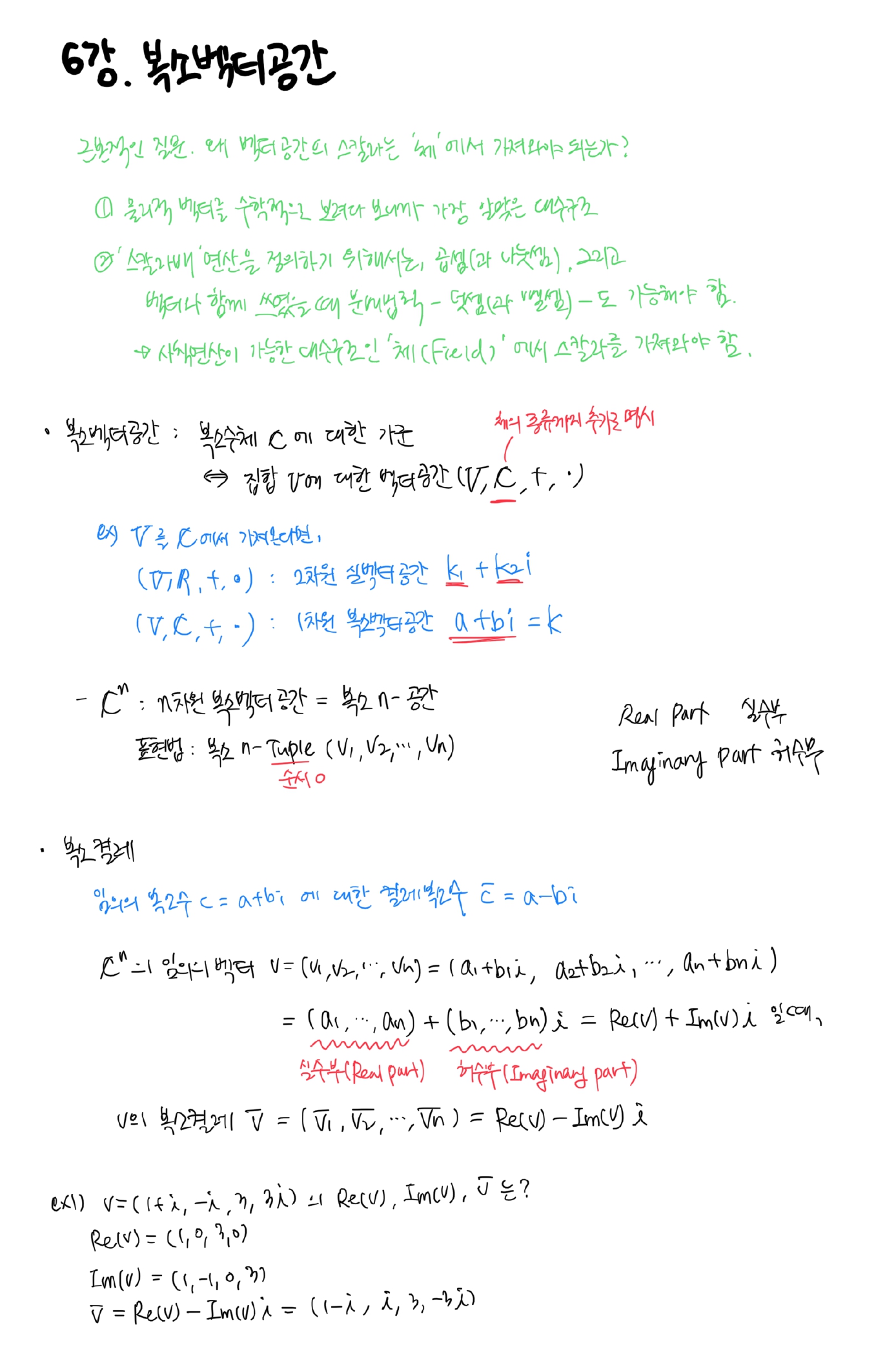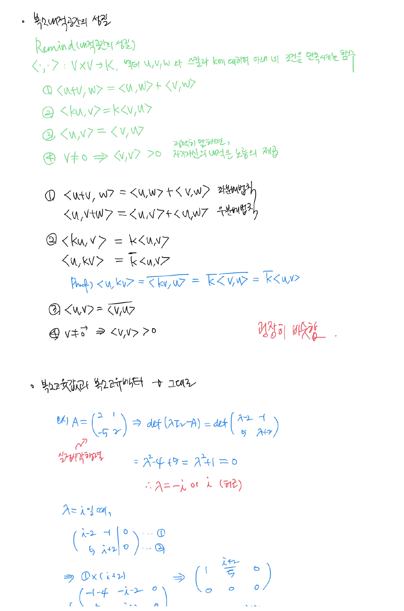 [이상엽 선형대수학] 6강. 복소벡터공간 필기