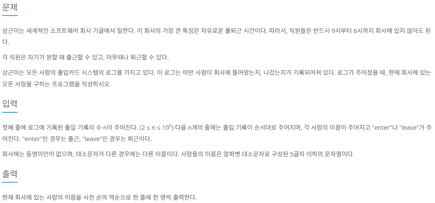 회사의 출입 로그를 통해 회사에 있는 모든 사람을 출력하는 문제