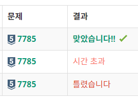 위 코드를 그대로 조합해서 제출하면 시간초과가 나온다.