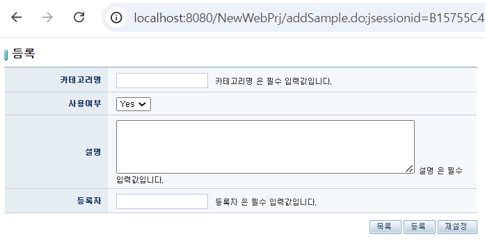 model을 addAttribute 메소드로 가공하고 뷰 이름으로 sample/eGovSampleRegister를 반환한다.
