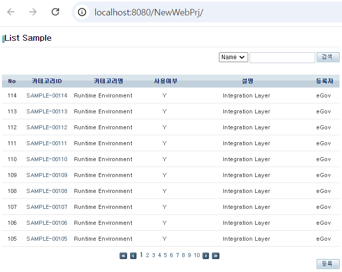 eGovFrame Web Project 를 실행하게 되면 다음과 같은 페이지가 나온다.