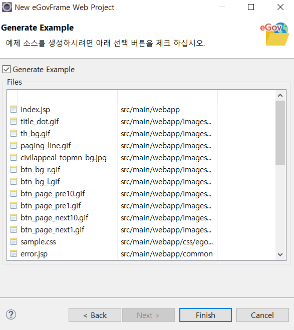 이런식으로 Example을 포함한 Web Project를 생성하고 나면