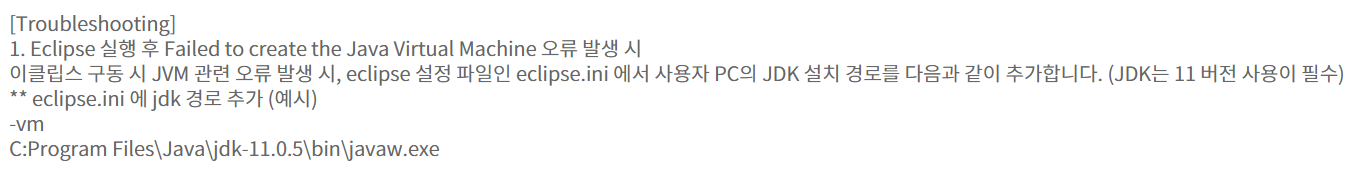 egovFramework 4.1 다운 링크에서 '개발자용 개발환경 64bit(Implementation Tool) Version 4.1.0' 게시글의 Troubleshooting 항목을 보면 '(JDK는 11 버전 사용이 필수)'라고 떡하니 적혀있다.