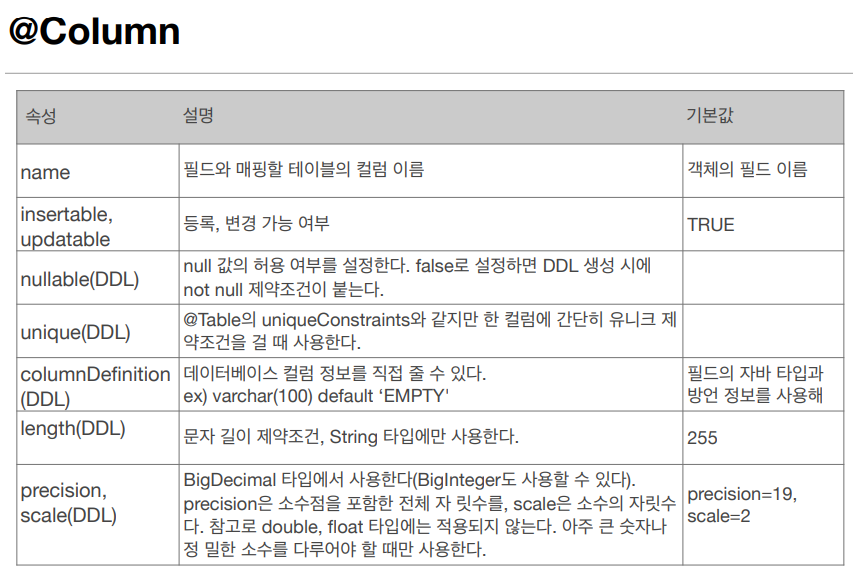 // 객체에는 username, DB에는 name이라 쓰고 싶음 -> Column 속성 사용